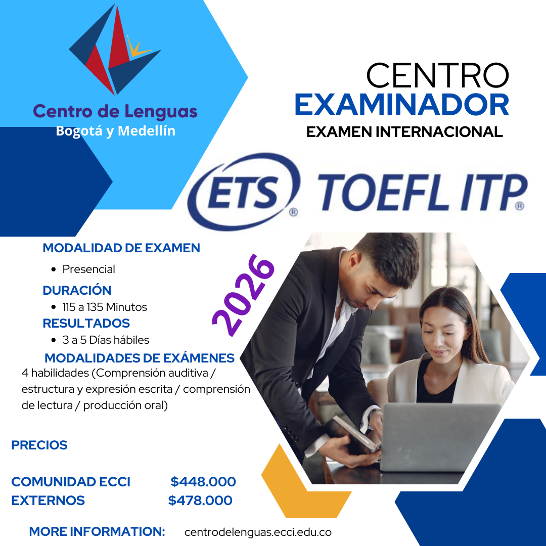 El TOEFL ITP es un examen con contenido 100% académico, que proporciona a las instituciones una forma fiable y válida de evaluar el nivel de competencia comunicativa en inglés como lengua extranjera.